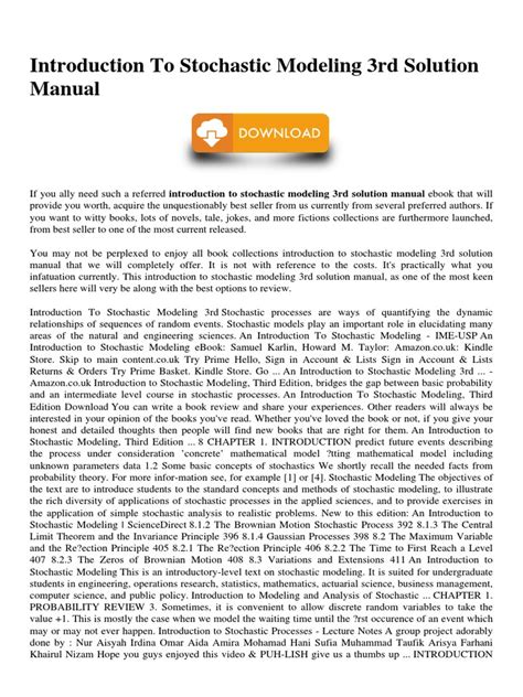 Download introduction to stochastic modeling 3rd solution manual PDF online is a convenient and frugal way to read introduction to stochastic modeling 3rd solution manual you love right from the comfort of your own home. Yes, there sites where you can get PDF "for free" but the ones listed below are clean from viruses and completely legal to use.